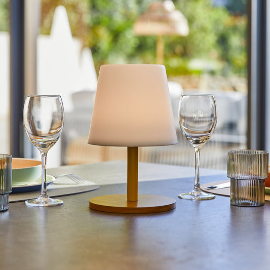 Table lamp cordless extendable bamboo foot LED warm white/white LUNY H28cm