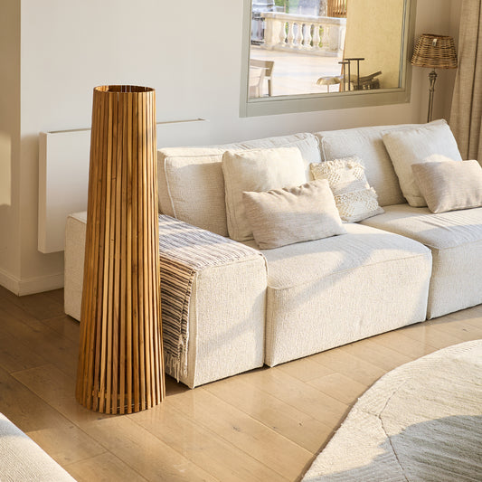 Lampadaire d'extérieur solaire TECKA TALL en bois teck avec module LED blanc chaud et télécommande H120cm