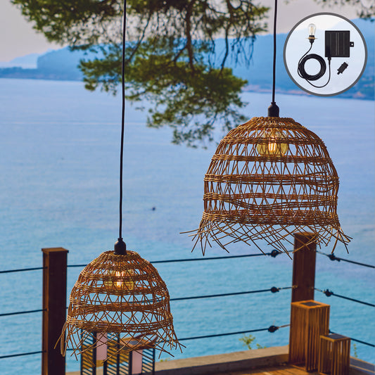 Suspension solaire AVILA SOLAR en rotin naturel avec câble hybride secteur et solaire 5m de longueur