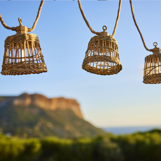 Lot de 2 guirlandes lumineuses solaires 10 abat-jour poly rotin LED blanc chaud FORMENTERA 3.80m