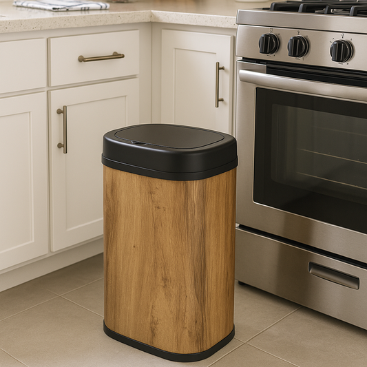 Poubelle de cuisine automatique 58L MAJESTIC WOOD design BOIS grande capacité en INOX avec cerclage