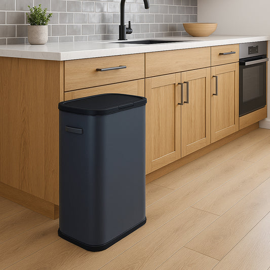 Poubelle de cuisine push 60L PORTLAND en acier Inox NOIR Ouverture par simple pression