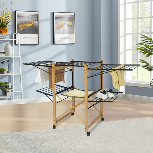 NAIROBI 20M Multifunction Clothes Drying Rack Foldable Clothesline Wood Color