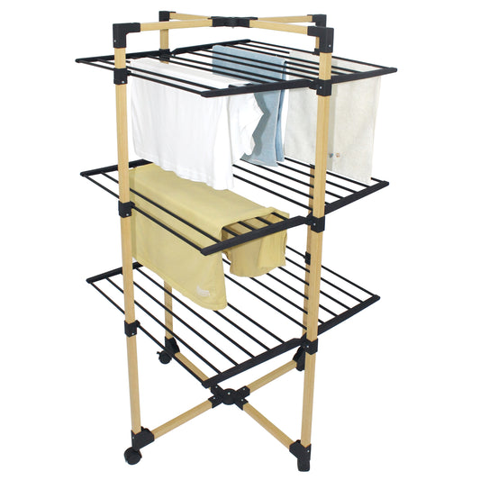 Séchoir à linge multifonction tour pliable 30M WILLIS 3 niveaux Couleur Noir et bois