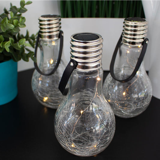 Set of 3 cracked glass solar bulbs to stand or hang micro LED warm white CRACK EDISUN H22cm