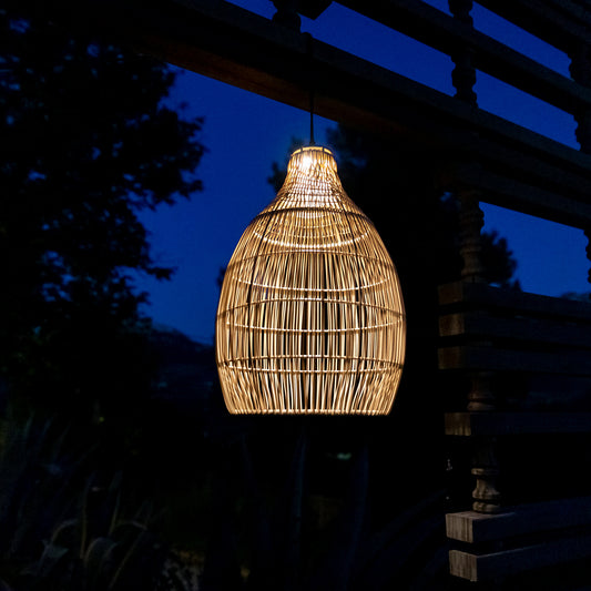 Suspension solaire DARMA SOLAR en rotin naturel avec câble hybride secteur et solaire 5m de longueur