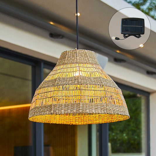 Natural bohemian solar hanging lamp in braided basketry style warm white LED MAYA H39cm
