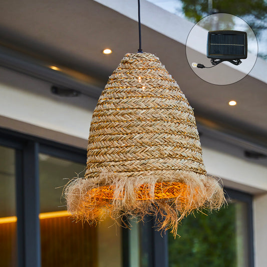 Natural bohemian solar hanging lamp in braided basketry style warm white LED MAYA H39cm