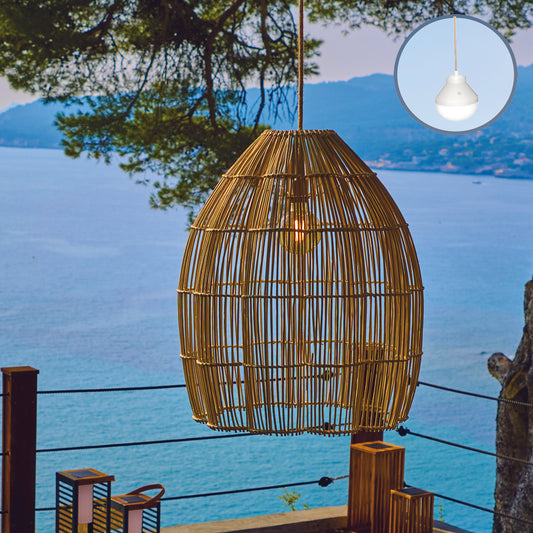 Suspension BELLA NOMAD en rotin naturel style bohème avec ampoule LED blanc/RGB nomade