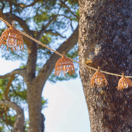 Guirlande lumineuse extérieur raccordable 10 abat-jour naturels en rotin MALY LIGHT HYBRID LED blanc chaud 8m solaire et sur secteur