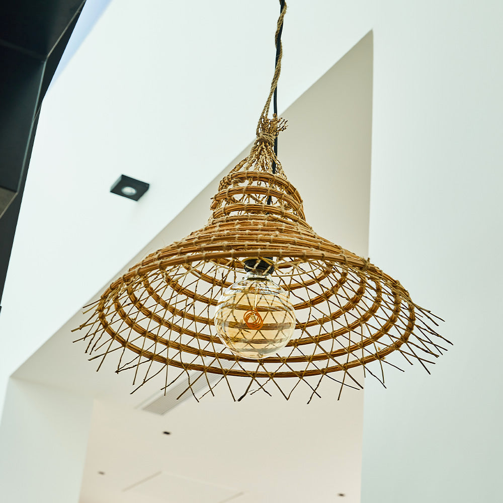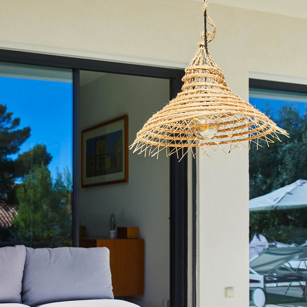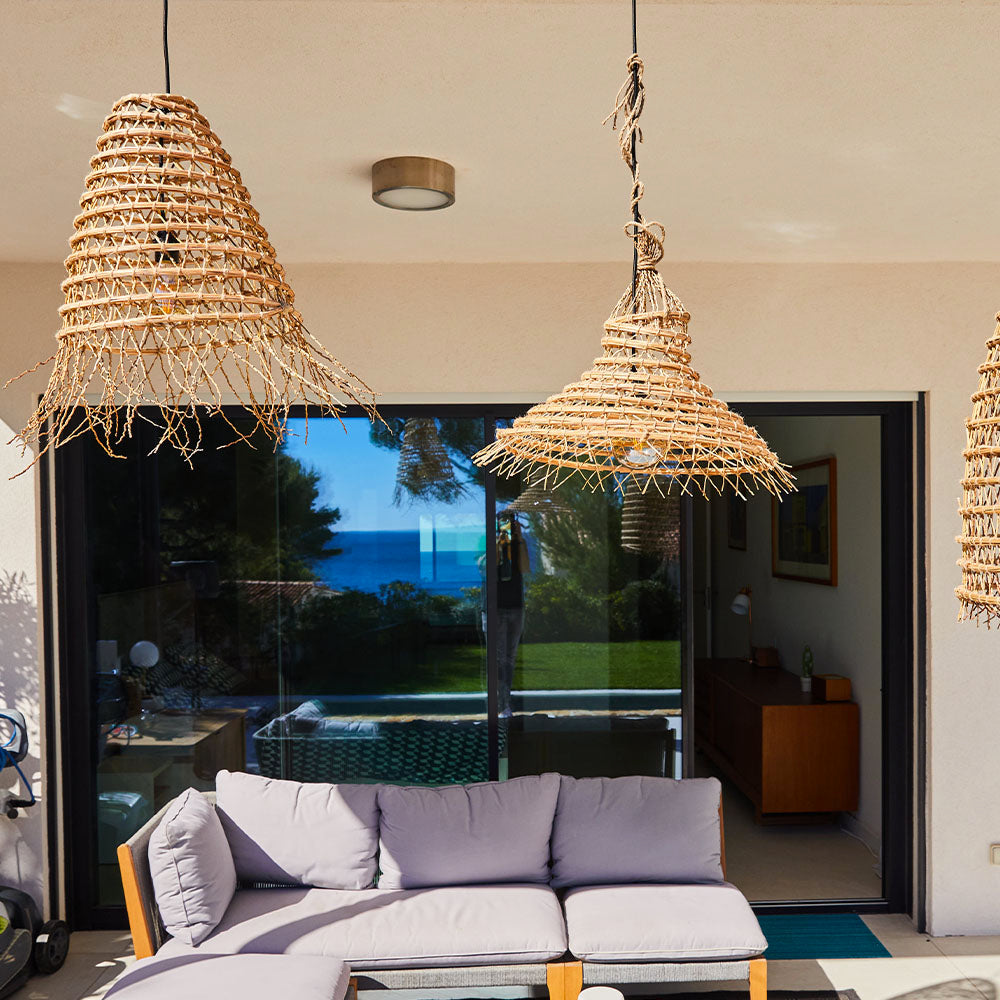 DATE PALM FIBER SHADE : The GAIA suspension, resulting from craftsmanship, is made of braided natural date palm fibers. Exotic and warm, it will highlight a modern interior and will adapt perfectly to a more bohemian or vintage style thanks to its ethnic chic look. Its unique braiding will enhance your living space. Dimensions: 60x60x44cm