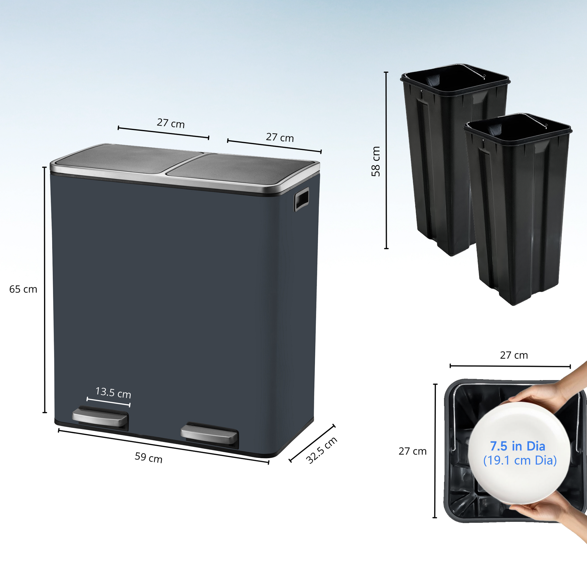 - Included: 2 plastic buckets with handle to hold your garbage bag, and a protective plastic edge for the protection of fragile floors. Ideal for sorting your waste: plastic bottles, glass, newspapers, cardboard, and household waste.