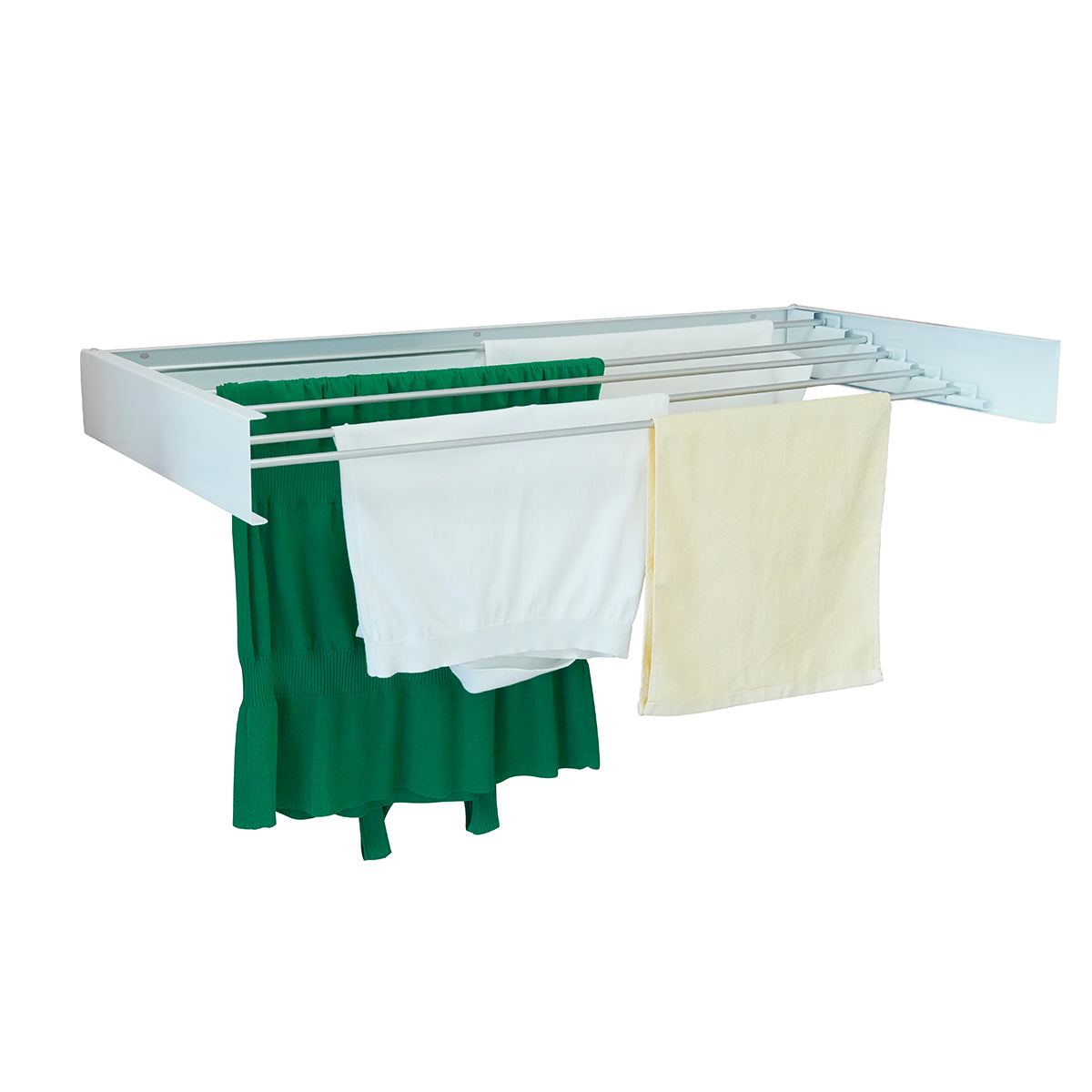 Idéal pour les petits espaces - Conçu pour les petits appartements ou les espaces réduits, le séchoir mural COBRA se fixe facilement au mur, libérant ainsi de la place au sol et offrant une solution de séchage discrète et fonctionnelle.