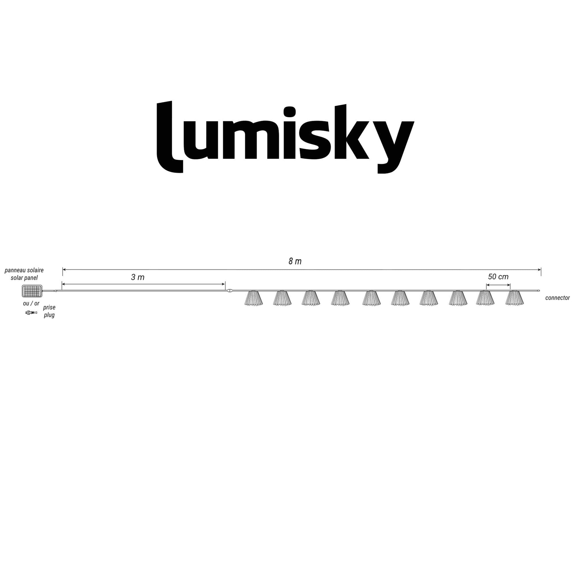 - Durabilité : La guirlande solaire LED Natura Light Hybrid design d’une longueur totale de 8m composée de 10 ampoules transparentes est protégée contre les éclaboussures (IP 44) et résiste aussi aux UV. Il y a 50cm entre chaque ampoule.