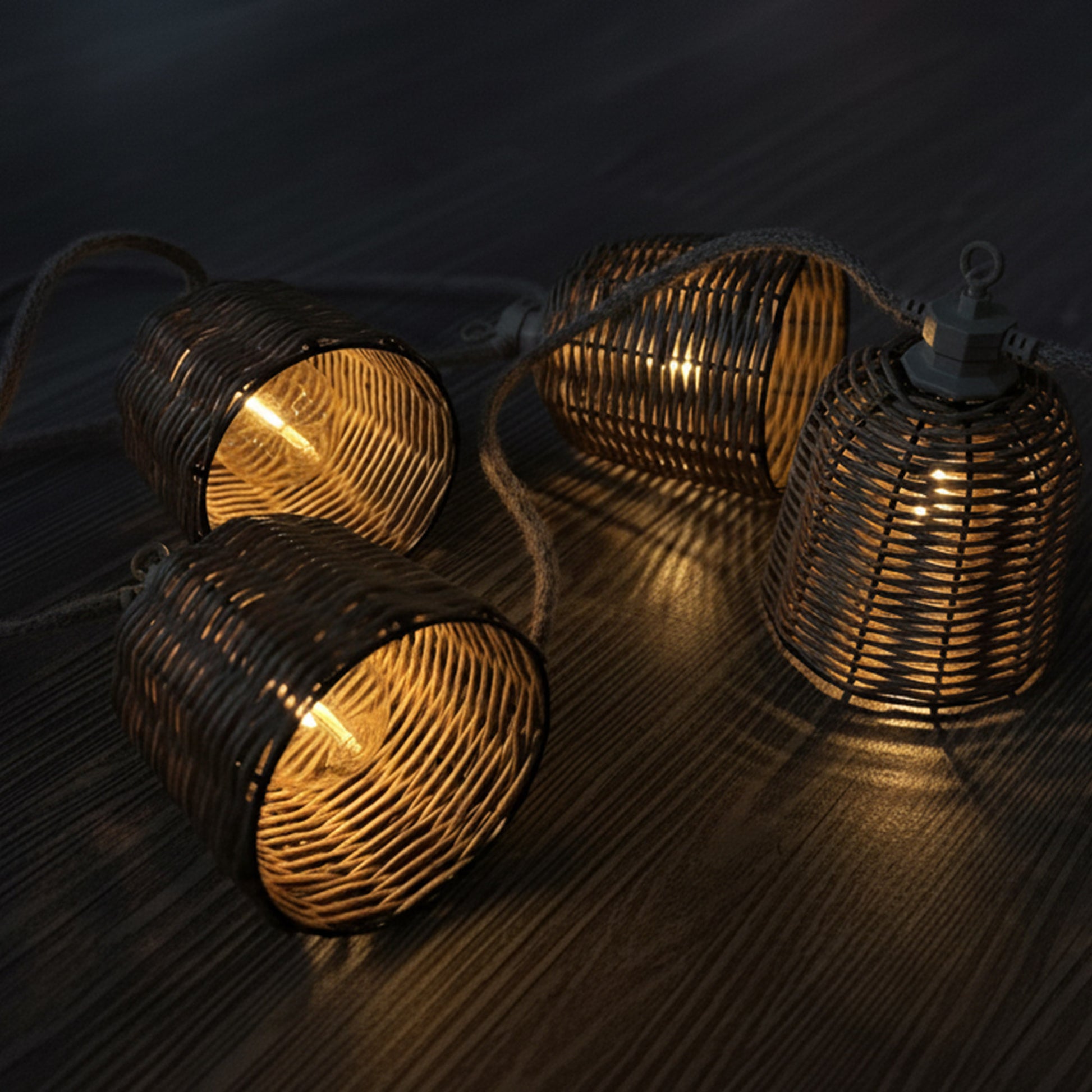 Guirlande lumineuse extérieur raccordable 10 abat-jour en poly rotin FORMENTERA BIG HYBRID blanc chaud 8m solaire et sur secteur