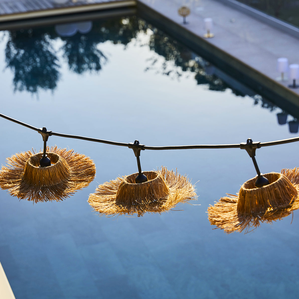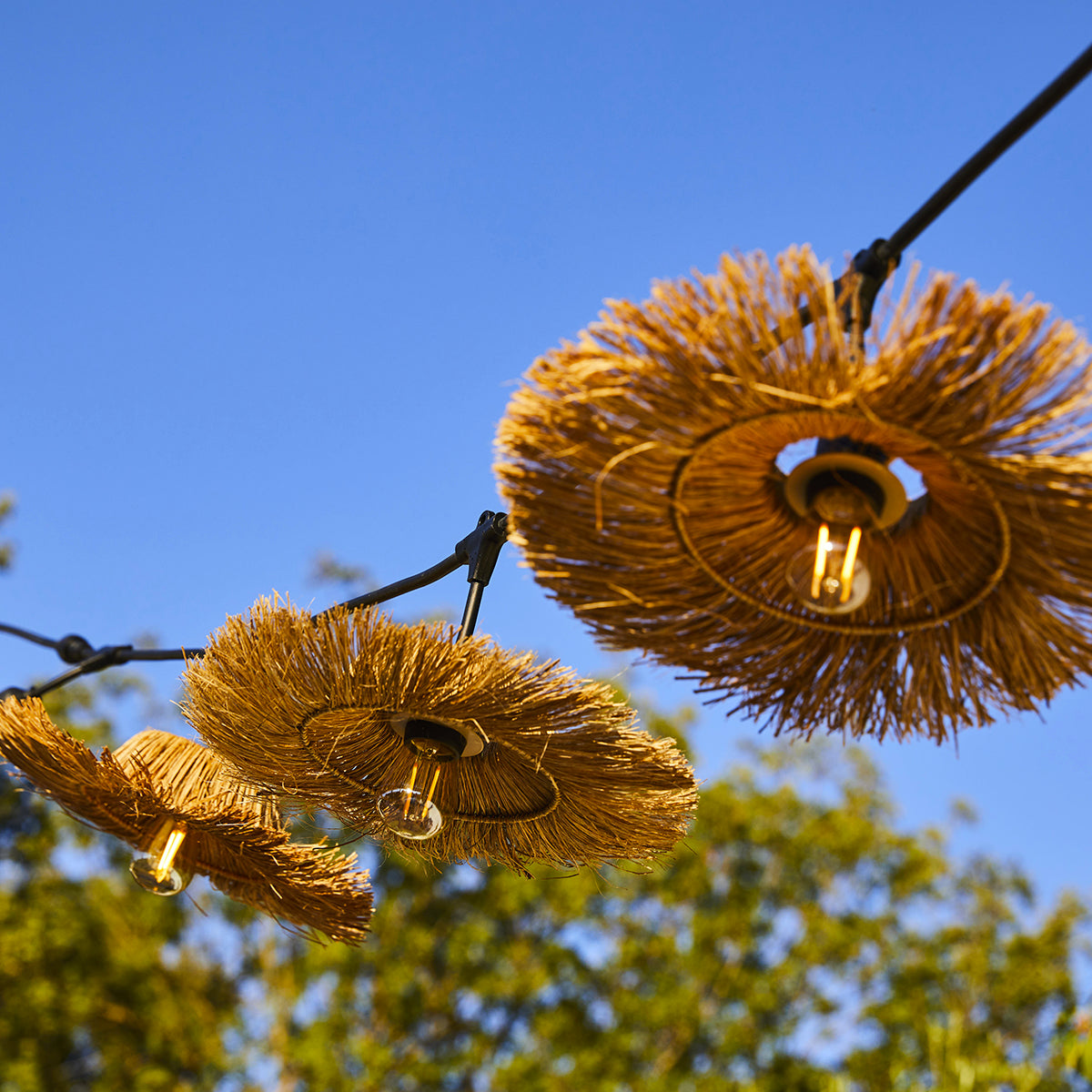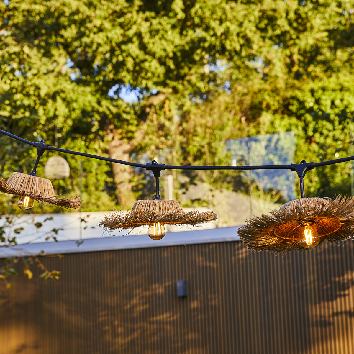 Guirlande lumineuse extérieure raccordable 10.2m avec 14 ampoules LED filament E27 blanc chaud TAHITI LIGHT Abat-jour en paille bohème