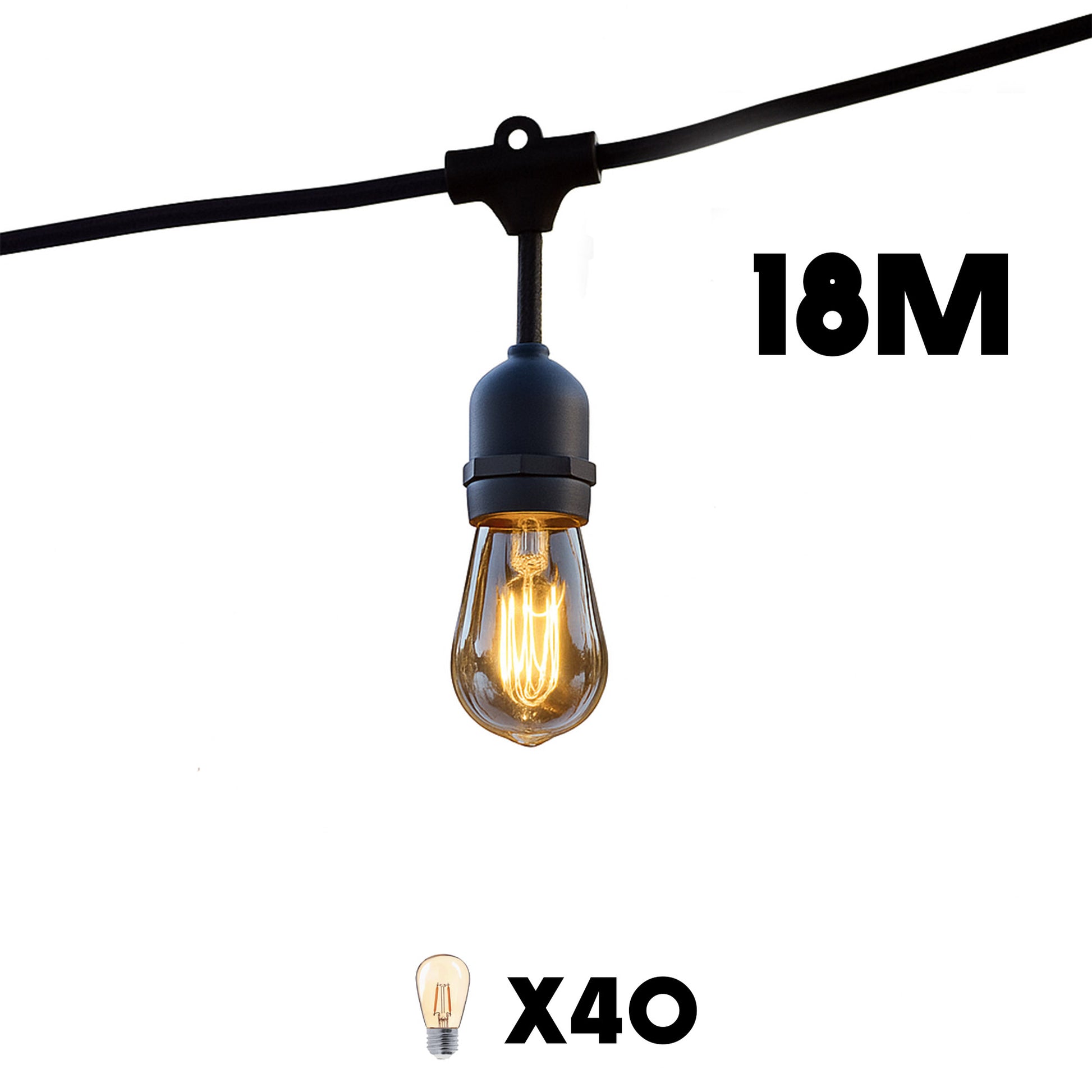 Guirlande lumineuse extérieure raccordable 18m avec 40 ampoules LED filament E27 blanc chaud MAFY LIGHT
