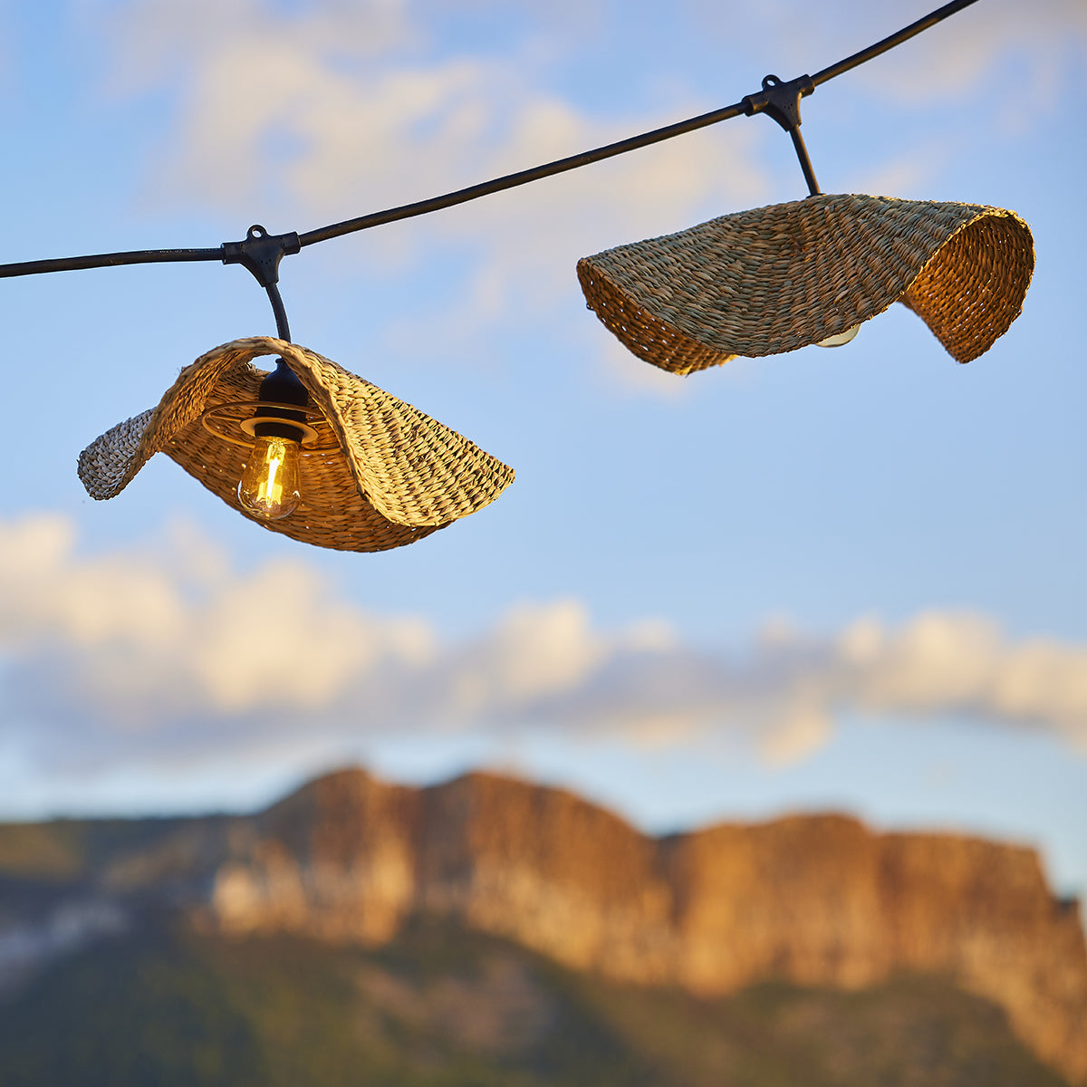 Guirlande lumineuse raccordable d'extérieur avec abat-jour en herbe marine style bohème 7 ampoules à filament douille E27 LED blanc chaud MOLLY LIGHT 6m