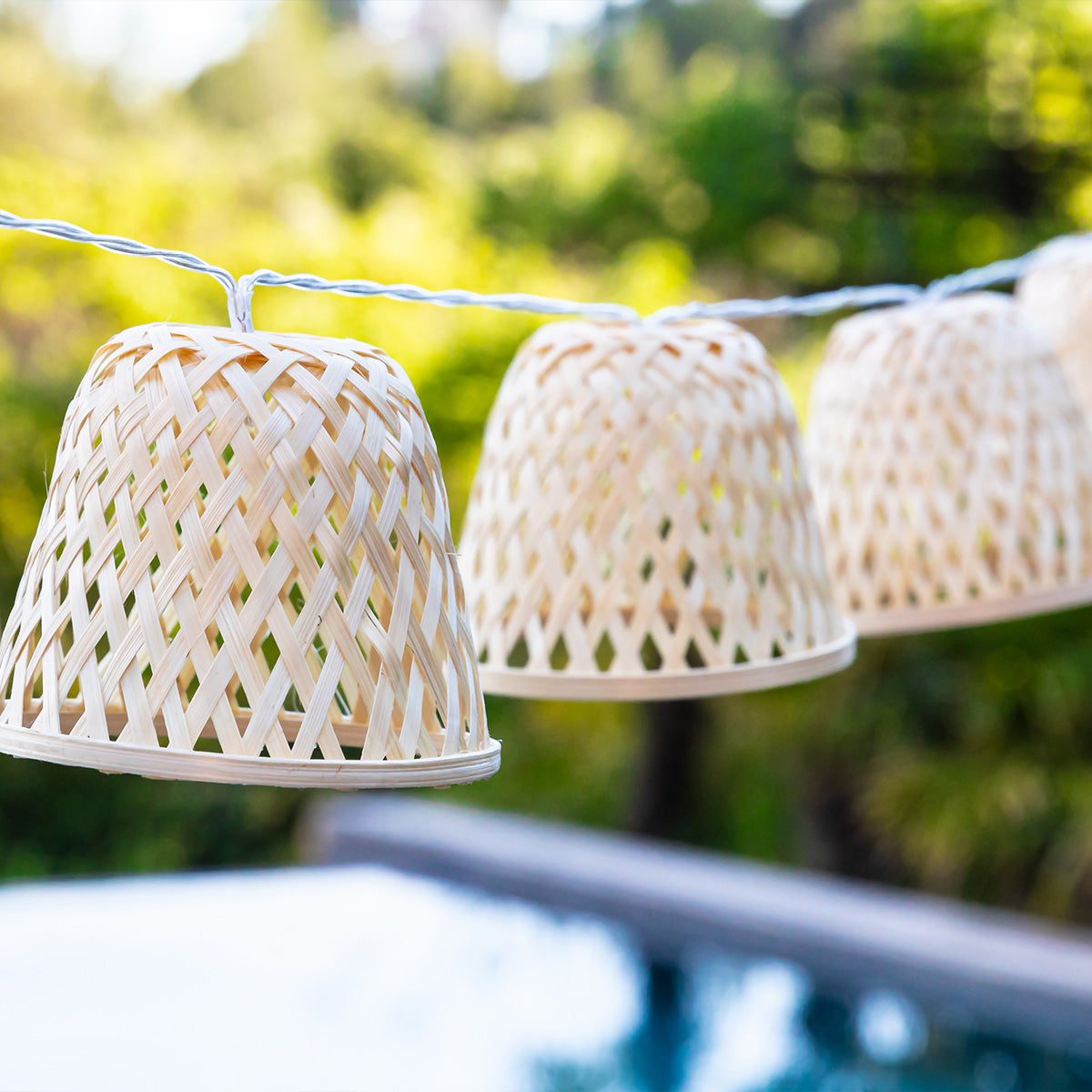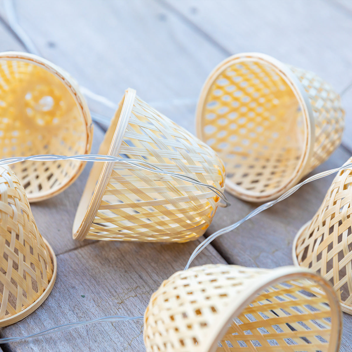Guirlande lumineuse solaire et avec prise bambou naturel 10 abat-jour LED blanc chaud CHILL HYBRID 3.80m