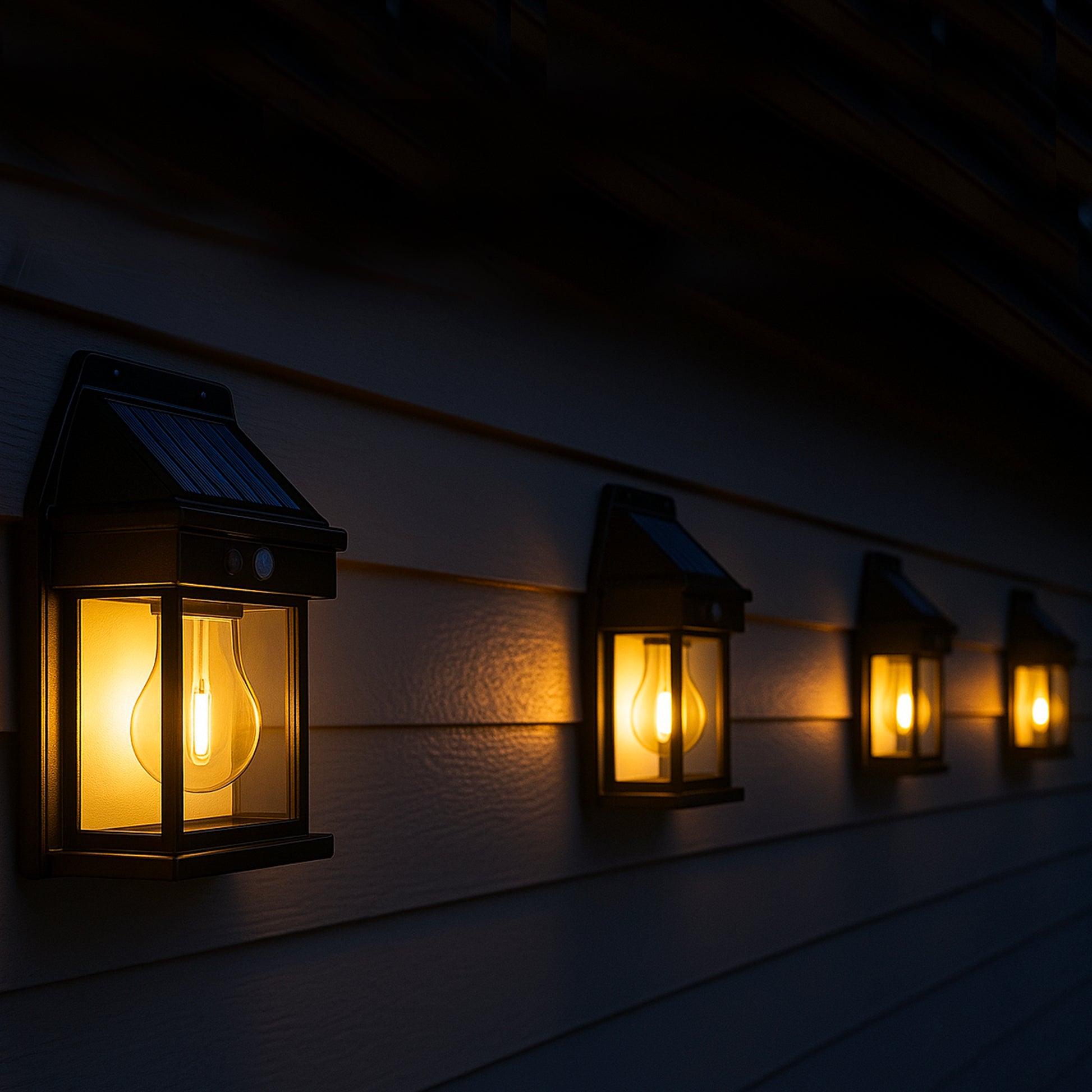 - Intensité : Le lot de 4 appliques solaires murales dispose d'un éclairage doux blanc chaud 3000 Kelvins, d'un flux lumineux de 30 lumens par applique.
