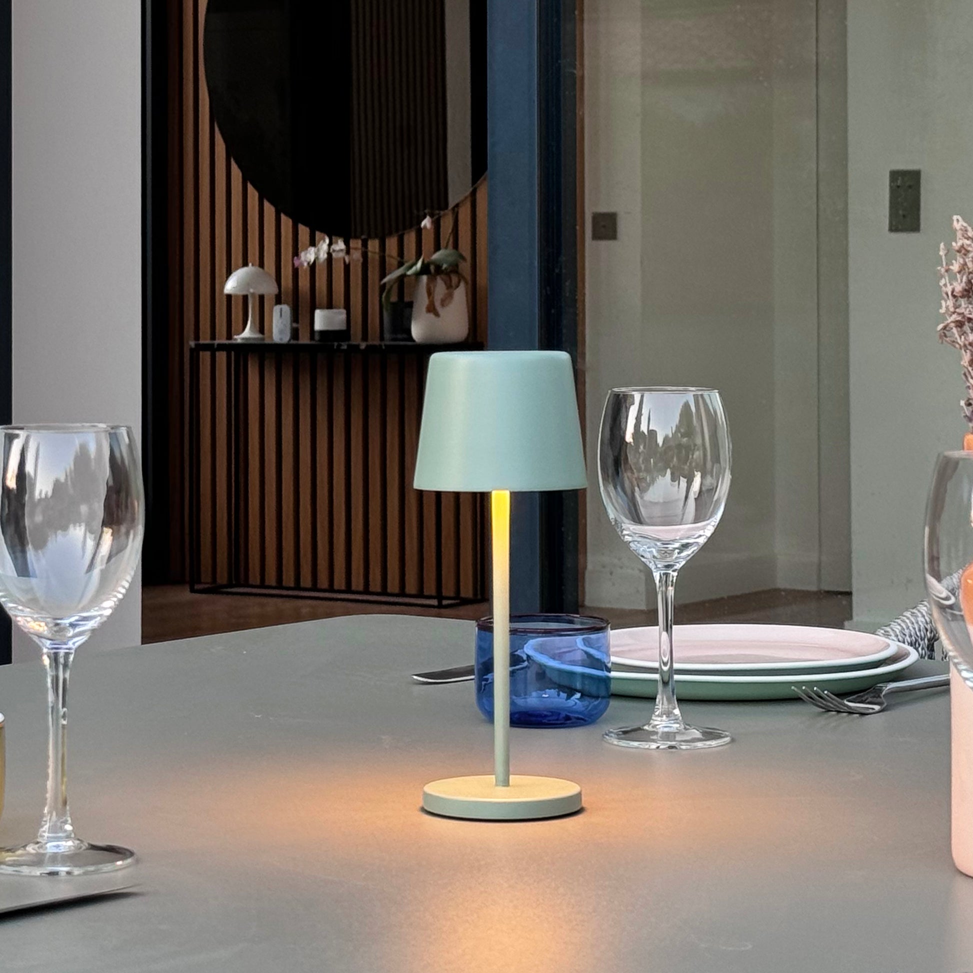 Mini lampe de table touch sans fil en aluminium vert LED KELLY MINI OLIVE blanc dimmable H22cm