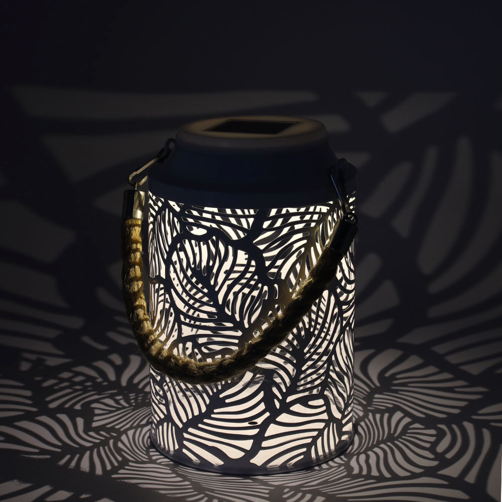Mini White Solar Lantern Metal Handle Rope Rainbow Shadow Effect Warm White LED MINI RAINBOW H 17.5cm