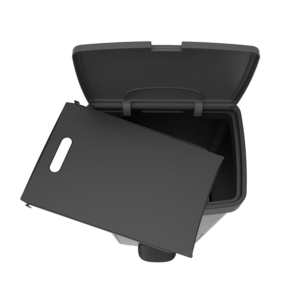 - UPPER PART: Press the lid with your fingertips to easily access the 40 liter residual waste compartment. Presence of a separator for 2 options: 40l for 50l bin bag OR 30l +10l (right or left)