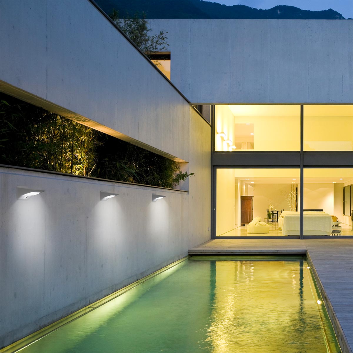 AUTOMATIC: to be fixed on a wall (or on wood) using the screws and dowels provided. Easy and simple installation. No need for an electrical supply, does not require any connection and does not incur any user fees. Possibility of switching off the projector using the ON/OFF switch.