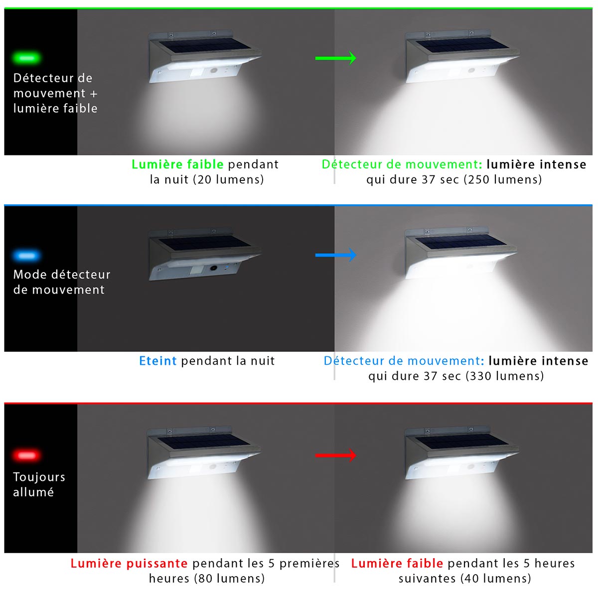 POWERFUL HIGH PERFORMANCE LIGHTING: the Derby solar LED floodlight works thanks to its large solar panel which collects energy during the day, stores it in its high capacity batteries, to automatically power the 21 extra powerful white 250 Lumen LEDs at nightfall which will light up under the action of the twilight sensor. This outdoor spot projector will provide you with cold light lighting that will give an intense and very bright finish.