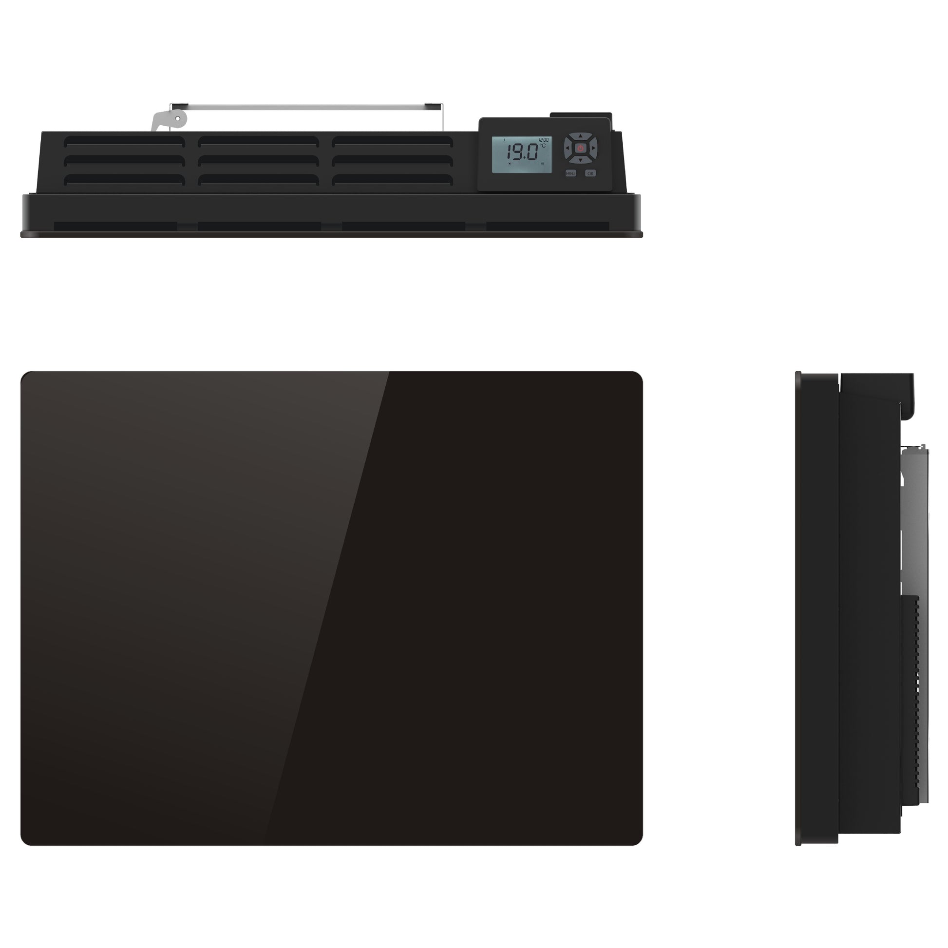 Black electric radiator with dry inertia CERAMIC block + GLASS facade LCD screen 1000W GLASS Standard NF