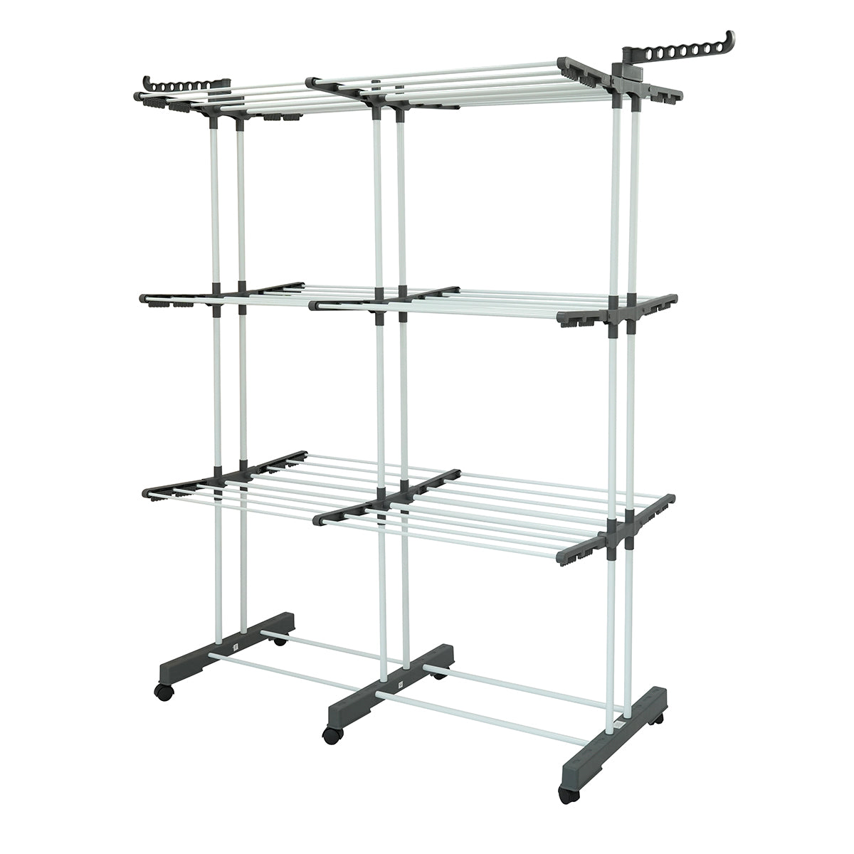 - Étendoir à linge multifonction grande capacité, entièrement modulable, pratique grâce à ses portes cintres intégrés ! étendez jusqu'à 38 m de linge (équivalent 3 machines) sur 3 niveaux ! Idéal pour les familles nombreuses.