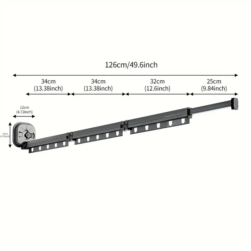 - Grande capacité de séchage : Étendoir à linge rétractable avec une longueur extensible jusqu'à 125 cm et 15 crochets rétractables pour suspendre des vêtements, serviettes et accessoires. Peut également accueillir 15 cintres.