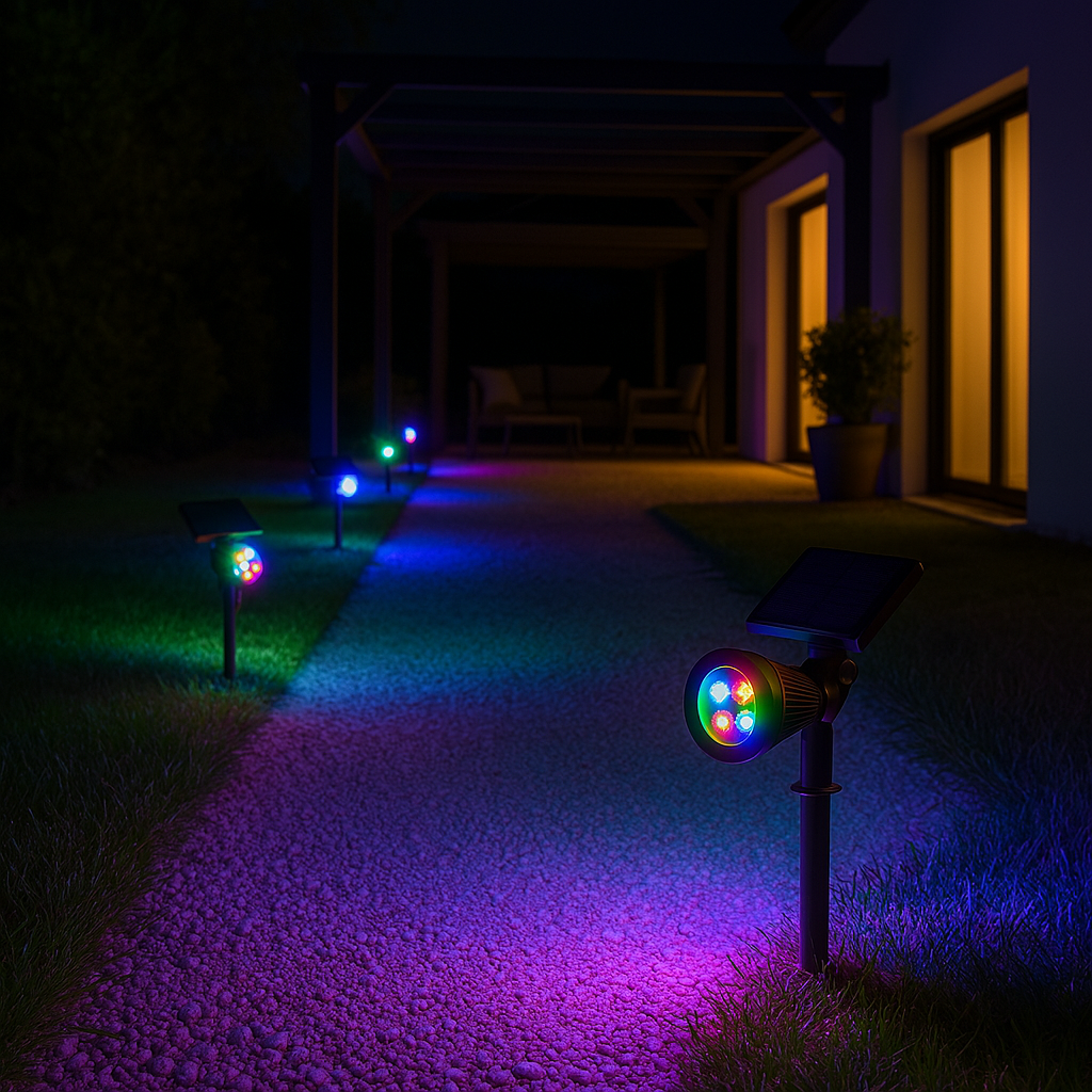 LED SOLAR SPOTLIGHT: 2x Spiky C34 is a set of 2 multicolored LED based solar spotlights which has up to 12 hours of operating autonomy. Sleek, they will bring an elegant touch to your garden! The set of 2 in 1 2x Spiky C34 solar spotlights is ideal for lighting your summer terraces, your lawn or even all your outdoor events. You choose !