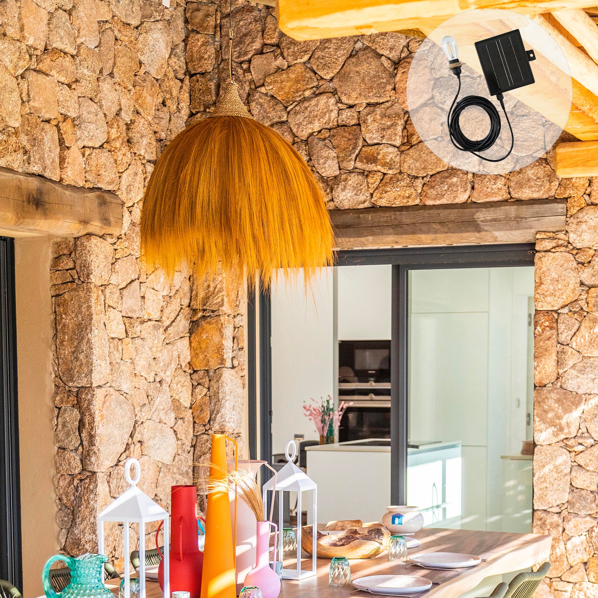 Suspension solaire MASAI SOLAR en herbe de rayung avec câble hybride secteur et solaire 5m de longueur