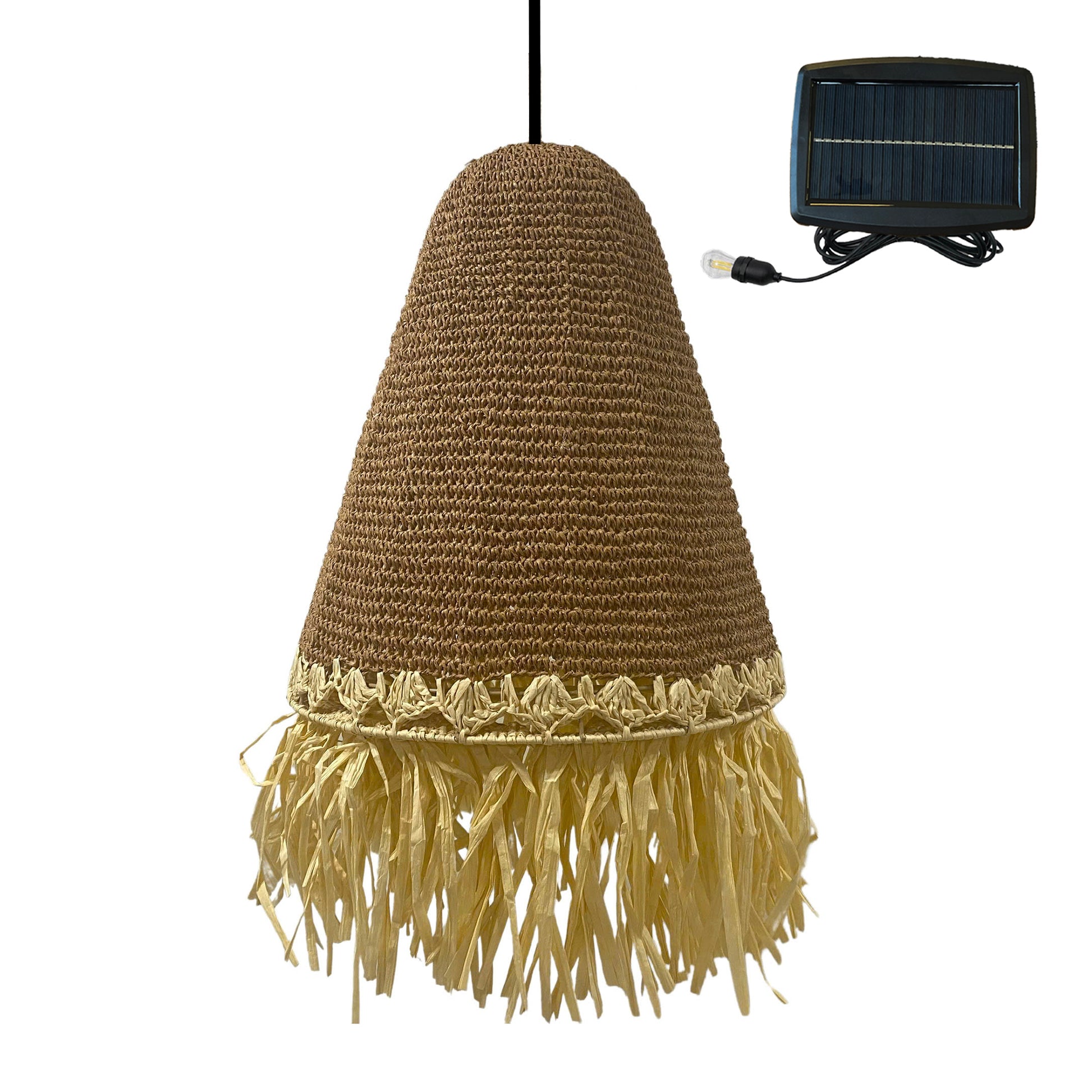 FABRICATION ARTISANALE : La suspension solaire issue de l'artisanat fabriquée en herbe marine et en fibre de papier. Ce matériau résistant est à la fois souple et rigide, ce qui permet une multitude de formes. Afin de maintenir l'abat-jour en bon état, il est préconisé de le suspendre dans un endroit sec, à l'abri de l'humidité et de la pluie.