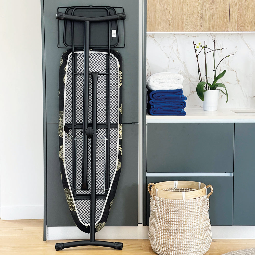 - Stable metal ironing board. 2 solid and ergonomic feet. Diameter 35 mm and steel thickness: 1mm. Non-slip feet. Durable and solid steel structure